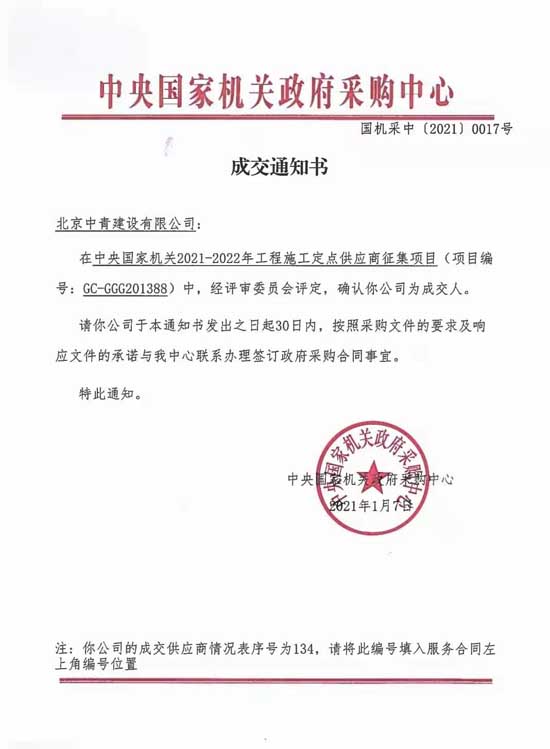 公司中標(biāo)中央國(guó)家機(jī)關(guān)2021-2022施工定點(diǎn)供應(yīng)商